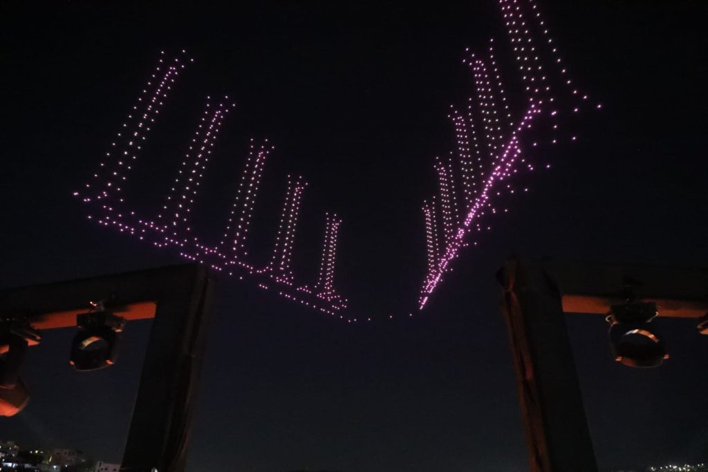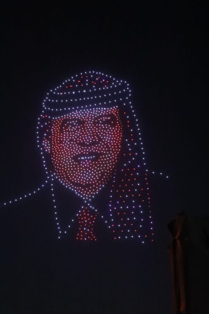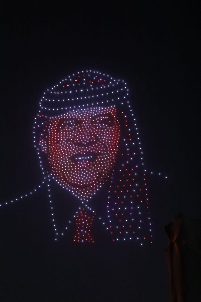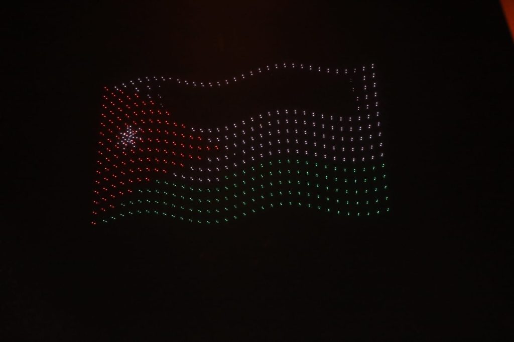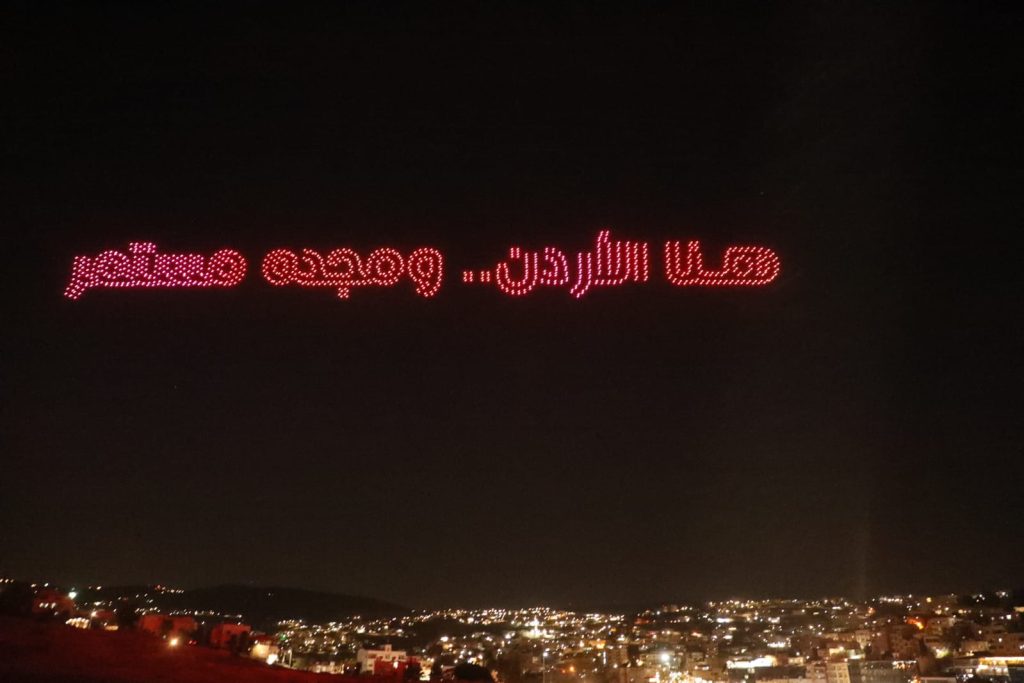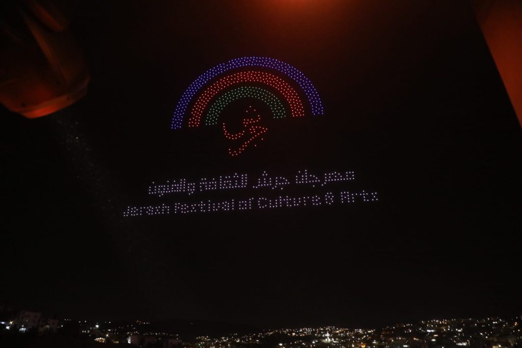 وشكلت طائرات الدرونز شعلة مهرجان جرش للثقافة والفنون، وصورة جلالة الملك عبدﷲ الثاني