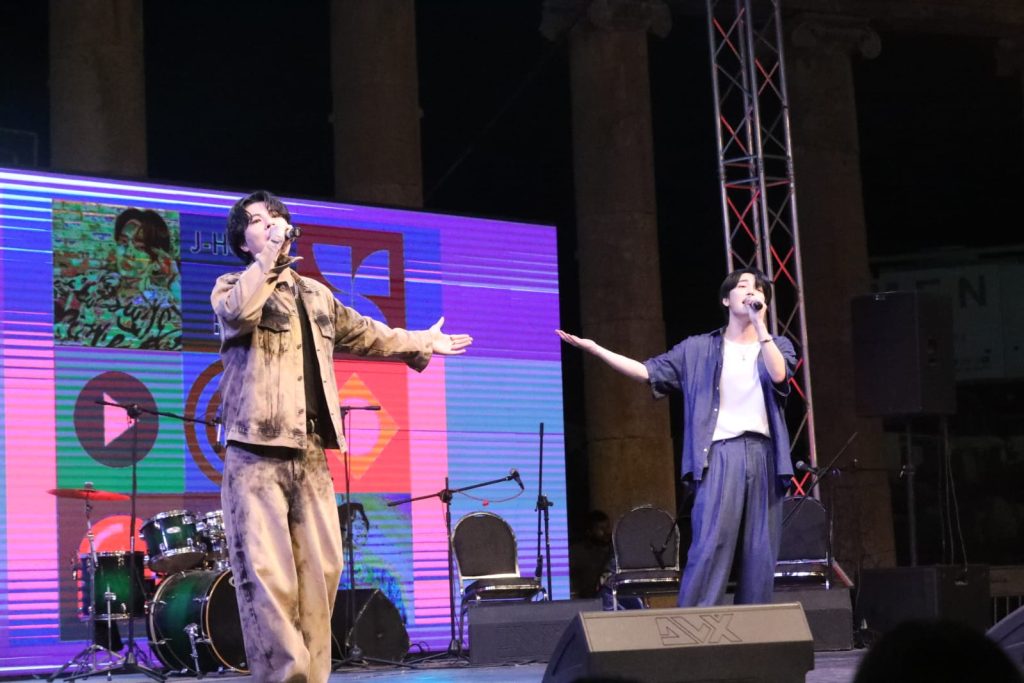 واستكمل الحفل بعرض فني للفنانين الكوريين “kisu ” و “jung hoon ”الذي كان جمهور جرش في انتظارهم ليعيشوا تجربة جديدة وفريدة من نوعها مع الفن الكوري الحديث.