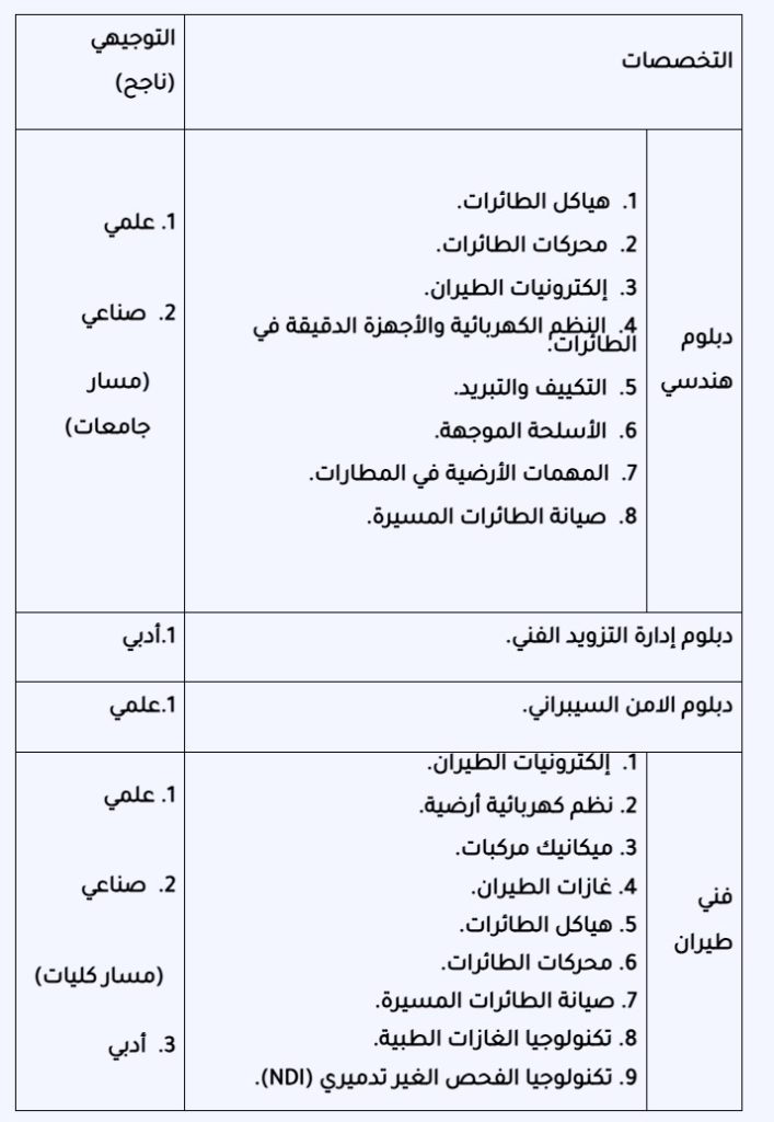 أعلنت القيادة العامة للقوات المسلحة الأردنية – الجيش العربي عن حاجتها لتجنيد عدد من الذكور من حملة شهادة الثانوية العامة (ناجح) للانضمام لبرنامج الدبلوم الهندسي وفني الطيران والمهن المساندة لحساب سلاح الجو الملكي/ كلية الأمير فيصل الفنية للعام 2025.