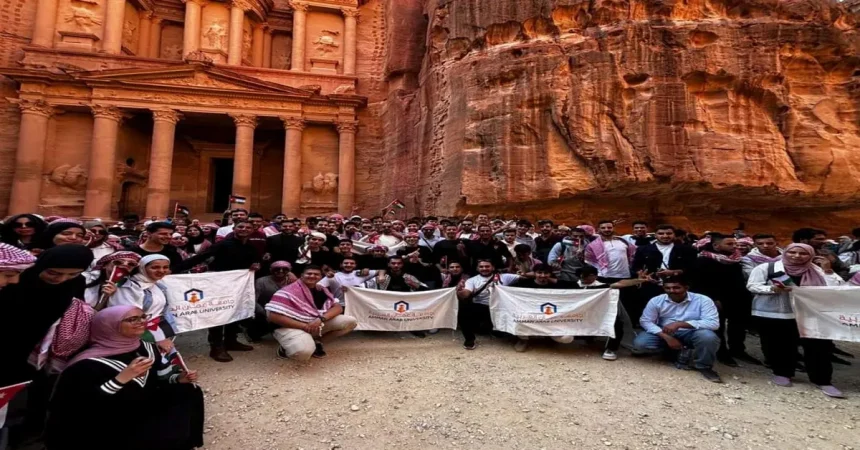 تحت مظلة الولاء والانتماء لجلالة الملك عبدالله الثاني ابن الحسين، وبعنوان “معاً لأجل الأردن”، شهدت البترا ووادي رم قبل أيام مبادرة وطنية غير مسبوقة شارك فيها نحو 450 طالبًا وطالبة من جامعة عمان العربية، في رحلة سياحية وطنية تهدف إلى تعزيز روح المواطنة والانتماء الوطني لدى الشباب.