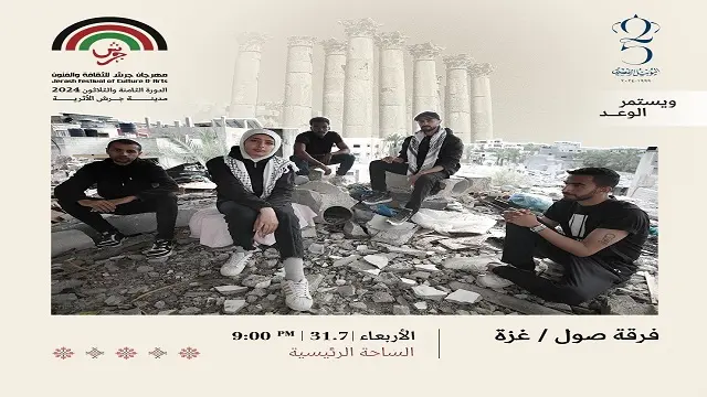 في مهرجان جرش الثامن والثلاثين للثقافة والفنون، نحن على موعدٍ يوم الأربعاء 31/7/2024 في الساحة الرئيسية للمدينة الأثرية بجرش، حيث الاستماع والاستمتاع بالغناء لفلسطين وغزة، بكلّ ما في الغناء من أحاسيس ومقاومة للجرح والألم والنكبات.