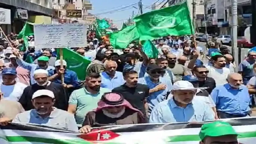 شارك المئات من أبناء محافظة اربد في المسيرة التي انطلقت بعد صلاة ظهر الجمعة من أمام مسجد الهاشمي وجابت شوارع المدينة، وذلك دعما لصمود الأهل في قطاع غزة الذين يتعرّضون لحرب تجويع وحرب إبادة جماعية على يد قوات الاحتلال الصهيوني بمشاركة عسكرية وغطاء سياسي واقتصادي أمريكي مطلق.