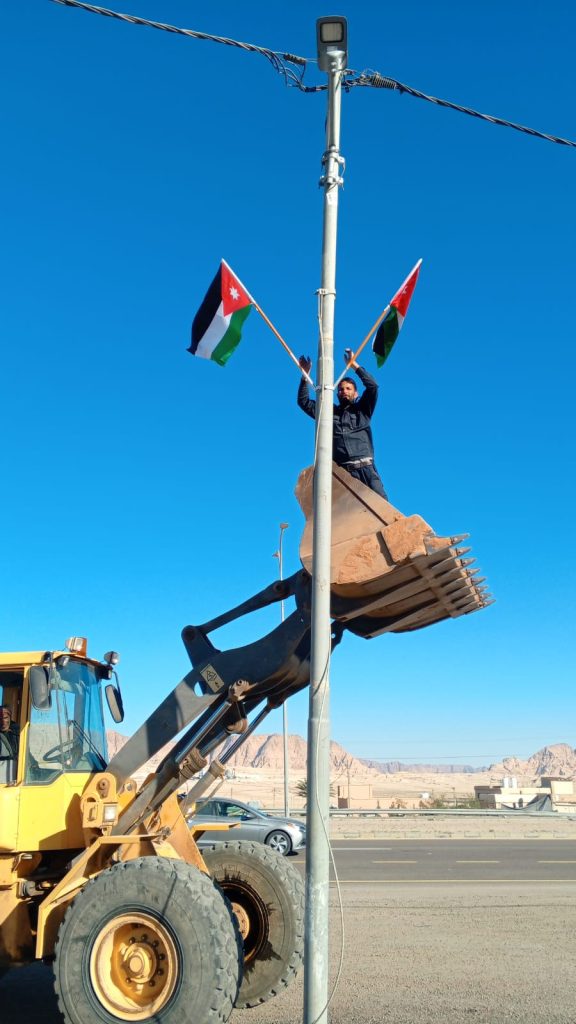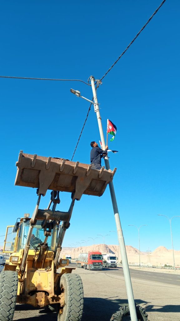 كشف رئيس لجنة بلدية القويره المهندس سميح ابو عامرية عن ان كوادر البلدية وزعت اكثر من ٨٦٠٠ علم اردني على مختلف المناطق والمؤسسات والشوارع في لواء القويره والقرى المحيطة بالبلدية سواء ضمن منطقة الاختصاص او خارجها احتفاء بيوم العلم الاردني المقرر في ١٦ نيسان سنويا .