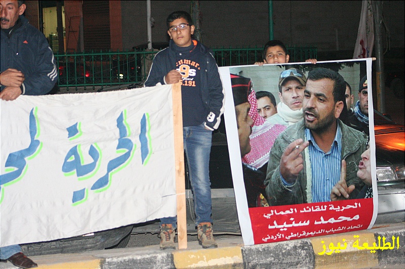 نظم حراك ذيبان بعد صلاة المغرب اليوم الجمعة وقفة احتجاجية تضامنية مع معتقلي الرأي وعلى رأسهم المعتقل القائد العمالي محمد السنيد على مثلث مليح.